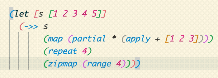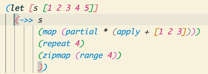 Rewrap | Changes enclosing brackets of the current form to parens/square brackets/curlies/double quotes and set (#{}) ![]() |