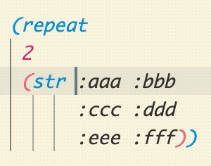Barf Forward | Moves the closing bracket backward, towards the cursor, past the preceding form. ![]() |